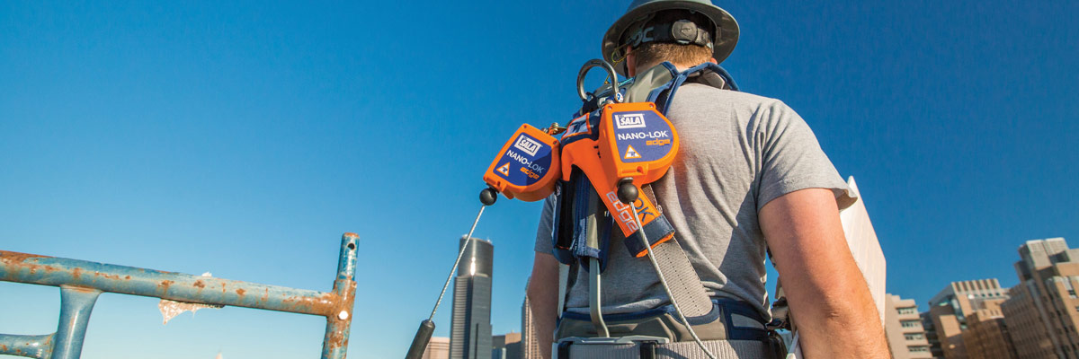 Capital Safety raises the bar in fall protection with the Nano-Lok edge, a twin-leg self-retracting lifeline with quick connector. Specially designed to provide an anchor at foot level and be applied to sharp edge environments, this ingenious device supports safe working at heights.