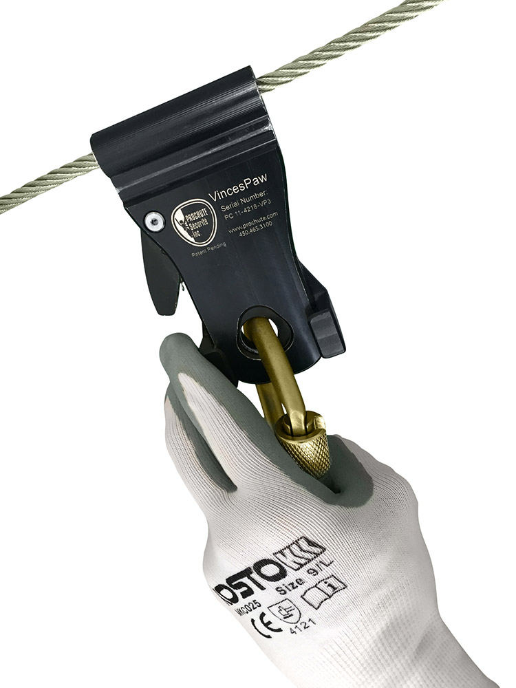 SPI is proud to announce that it has been granted a patent for its latest fall protection equipment innovation: the Vince Paw. This rolling device, also called shuttle, will allow the worker to attach himself to a lifeline and switch to intermediate anchors.