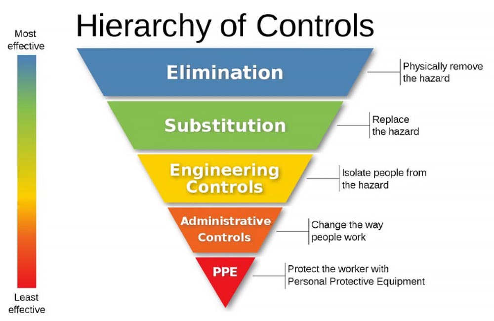 When evaluating the ways to control the environment and sorting in order of importance the elements promoting workers’ safety, the hierarchy of controls becomes particularly useful.