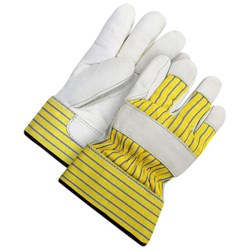 With its cowhide grain leather palm, index finger and fingertips, this work glove is highly resistant to wear. The cotton back of the hand with grain leather strips at the knuckles increases the product's durability. The thick plush acrylic lining keeps your hands warm in colder temperatures. The rubberized safety cuff optimizes your wrist protection, and the elastic wrist band inside prevents debris from entering the glove. Finally, the American cut with side thumb increases worker comfort.